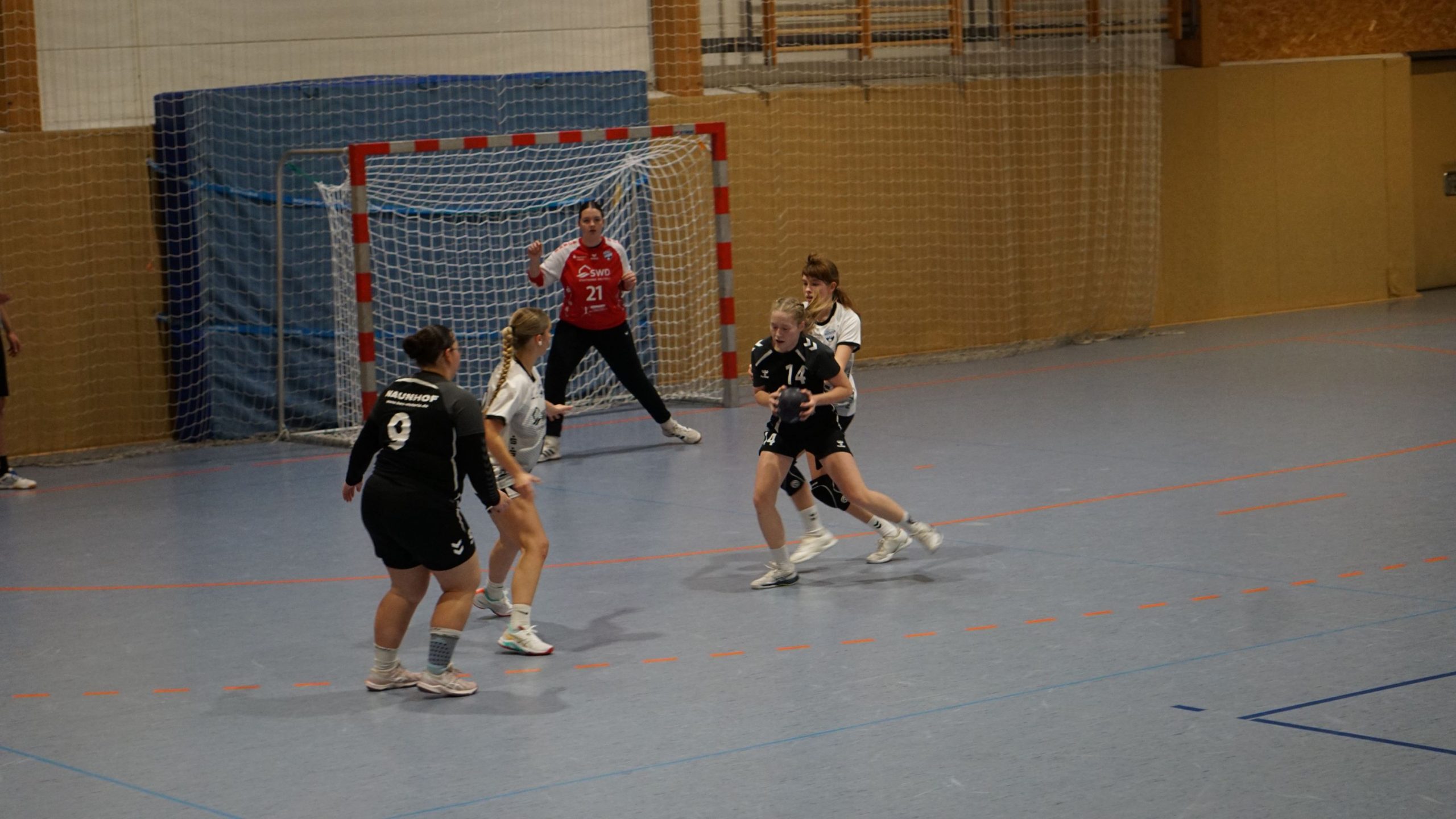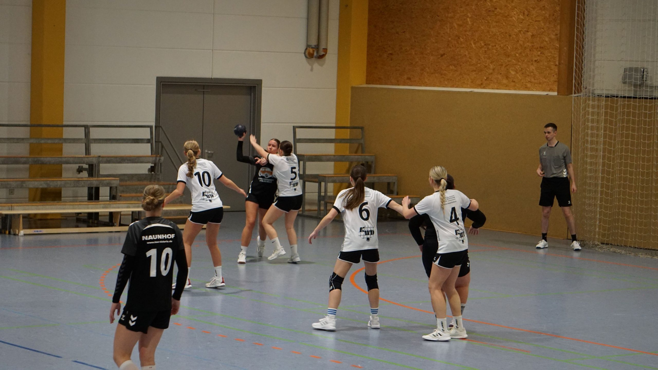 Auch in dieser Saison kamen beide Mannschaften nicht gut in die Partie, es wurden in den Anfangsminuten viele Würfe „ohne Not“ verworfen und die Abwehrreihen standen sehr sicher. Nach 16 Minuten stand es gerade mal 3:3 Unentschieden. Die Erste Auszeit nahmen anschließend die Gastgeberinnen aus Naunhof. Naunhof konnte anschließend knapp im Führung gehen aber die Gäste aus Delitzsch blieben immer ein bis zwei Treffer dran. Gute Chancen wurden aber weiterhin „kläglich“ verworfen, so dass am Ende der ersten Halbzeit Naunhof mit 9:7 führte.