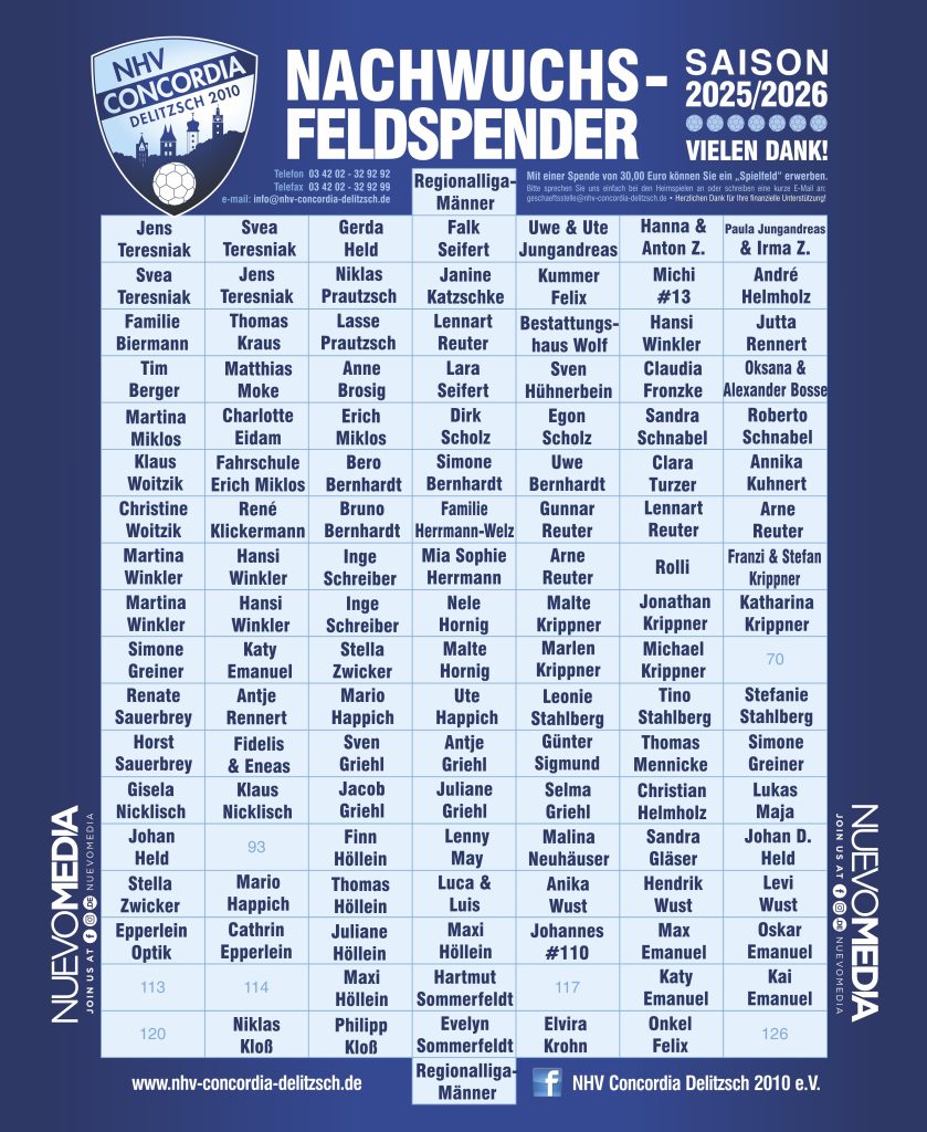 Melden Sie sich bitte einfach bei den Heimspielen an der großen Feldsponsorentafel im Foyer oder schreiben Sie eine kurze E-Mail an geschaeftsstelle@nhv-concordia-delitzsch.de